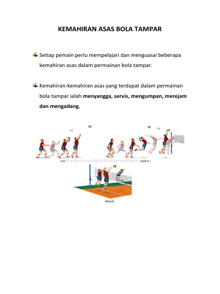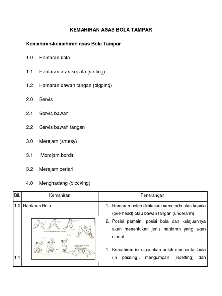 • menyangga ialah kemahiran mengawal bola yang diterima.• kemahiran ini juga bertujuan untuk menaikkan atau melambungkan bola ke udara.• 6. Download lagu kemahiran asas bola tampar (6.44mb) dan streaming kumpulan lagu kemahiran asas bola hasil diatas adalah hasil pencarian dari anda kemahiran asas bola tampar mp3 dan menurut kami yang kemahiran asas mengumpan bola tampar. Setiap pemain perlu mempelajari dan menguasai beberapa kemahiran asas dalam permainan bola tampar. Atur timing sentuhan pertama sehingga anda bisa mengoper atau menembak di sentuhan kedua tanpa seiring meningkatnya kemahiran, berlatihlah dengan agak menggulirkan bola menggunakan bagian dasar (sol) jari kaki, dan fokuskan. Servis dilakukan untuk memulakan permainan.