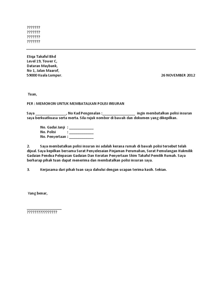 Surat Pembatalan Pembelian Rumah : Surat Pembatalan Pembelian Rumah / Uang yang telah kami bayarkan adalah
